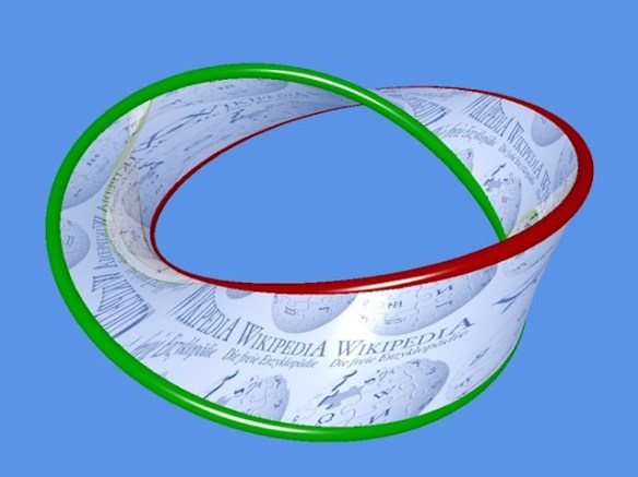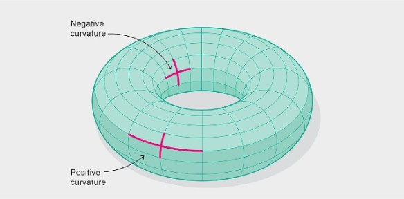 Даже в простейшем случае цилиндра это преобразование даёт нам принципиальной важности фигуру. Именуемую тор и демонстрирующую естественное объединение двух базовых геометрий для поверхностей пространства: внешняя часть тора имеет положительную кривизну, а у части внутренней кривизна, соответственно, отрицательная. Также существенно – и желательно запомнить – что внутренняя и внешняя части этой фигуры представляют собой две равные половины исходного тора.