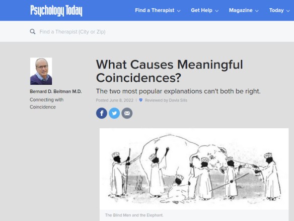 [1] Bernard D. Beitman M.D., What Causes Meaningful Coincidences? Psychology Today Blogs, June 8, 2022