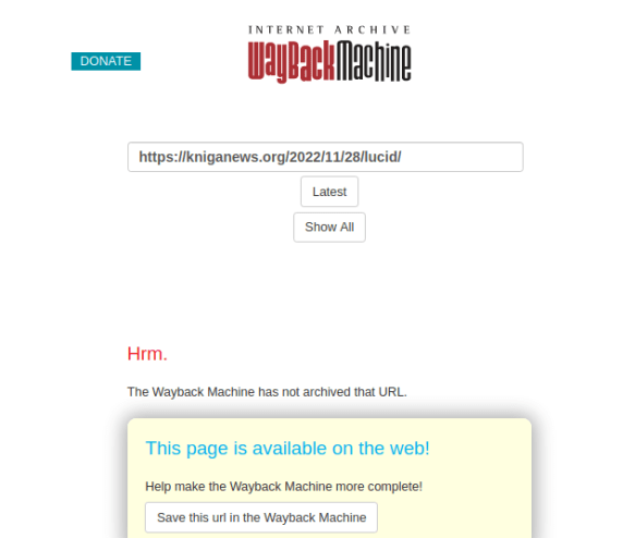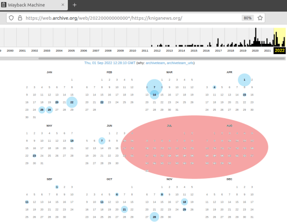 Собственно ритуал тут совсем простой и родился/поддерживается со времён «эффекта Мастера и Маргариты»: сразу после выкладывания новой статьи на сайте kiwiarxiv или kniganews через WayBack Machine сохраняется (а) копия собственно материала и (б) копия главной страницы сайта, где свежая публикация стоит самой первой.