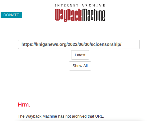 Формулируя аккуратнее, за последние месяцы текущего 2022 года пока что выявлен – и отчасти вылечен – лишь один подобный случай. Но поскольку удалённая из хранилищ Internet Archive статья по своему содержанию весьма примечательна – ибо на конкретных примерах демонстрирует реальные масштабы и механизмы цензуры в мировой науке – имеет смысл и эту историю зафиксировать отдельным рассказом.