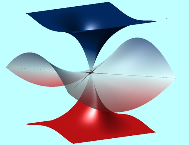 И здесь мы подходим к очень важному «во-вторых». Ибо одним из особо примечательных свойств неэрмитовых систем являются так называемые «исключительные точки». Собственно термин появился в физике из математики, где в алгебраической геометрии (изучающей формы пространств и фигур на языке алгебраических конструкций) исключительной точкой именуют весьма особые объекты или сингулярности. Типа, скажем, вершины конуса. Все прочие точки конуса имеют окрестностью локально плоское пространство и лишь единственная — исключительная — точка на вершине такой окрестности не имеет.