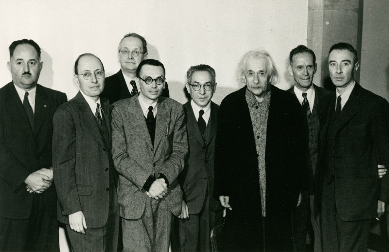 Для более полного представления о составе научного коллектива, поздравлявшего Эйнштейна в Принстоне, полезно привести здесь несколько расширенную версию той же самой фотографии. Где крайним, бок о бок с Юджином Вигнером и Германом Вейлем, стоит Говард Робертсон.