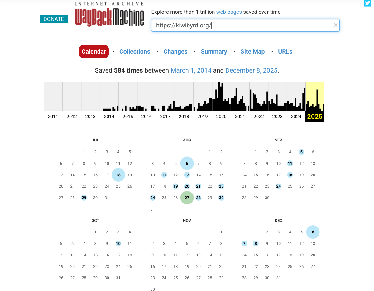 Во-вторых, когда в конце 2025 было замечено, что некая «незримая могущественная сила» в очередной раз упорно удаляет публикации киви-архива из собраний Way Back Machine (глобального хранилища «слепков интернета»), был предпринят новый — довольно специфический — контр-манёвр. [i8]