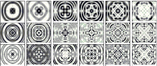 Наконец, говоря о полезных и наглядных приложениях фигур Хладни, никак нельзя обойти стороной квантовую механику. Ибо здесь модель акустических стоячих волн и собственных резонансных колебаний оказывается чрезвычайно удобной и внятной аналогией, поясняющей физику электронных оболочек в атоме. Электрон, как известно, можно представлять в виде бегущей волны энергии. А в атоме эта волна оказывается замкнута притягивающим потенциалом ядра. Иначе говоря, подобна колеблющейся струне гитары. И подобно тому, как корпус гитары резонирует лишь на дискретный набор звуков с определенными длинами волн, так и в атоме электроны могут занимать лишь определенные орбиты, соответствующие стоячим волнам или режимам собственных колебаний атома. Поэтому вовсе не случайность, что некоторые из фигур Хладни, при определенных частотах звука образуемые в круглой емкости с жидкостью, по своей форме аналогичны электронным оболочкам в атоме.