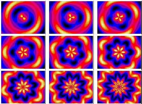 В этих формах без труда можно распознать структуры, повсеместно встречающиеся в природе – в строении раковин, цветов, кактусов, других растений и животных. Особенно простейших организмов или обитающих в воде, вроде медуз или морских звезд. Параллели с творениями природы становятся особо убедительными, когда экспериментаторам удается формировать не плоские, а объемные фигуры в трехмерном пространстве. Например, заполняя дымом ящик с прозрачными стеклянными стенками и подбирая особые звуки, удавалось формировать в воздухе структуры, очень похожие на листья папоротника.