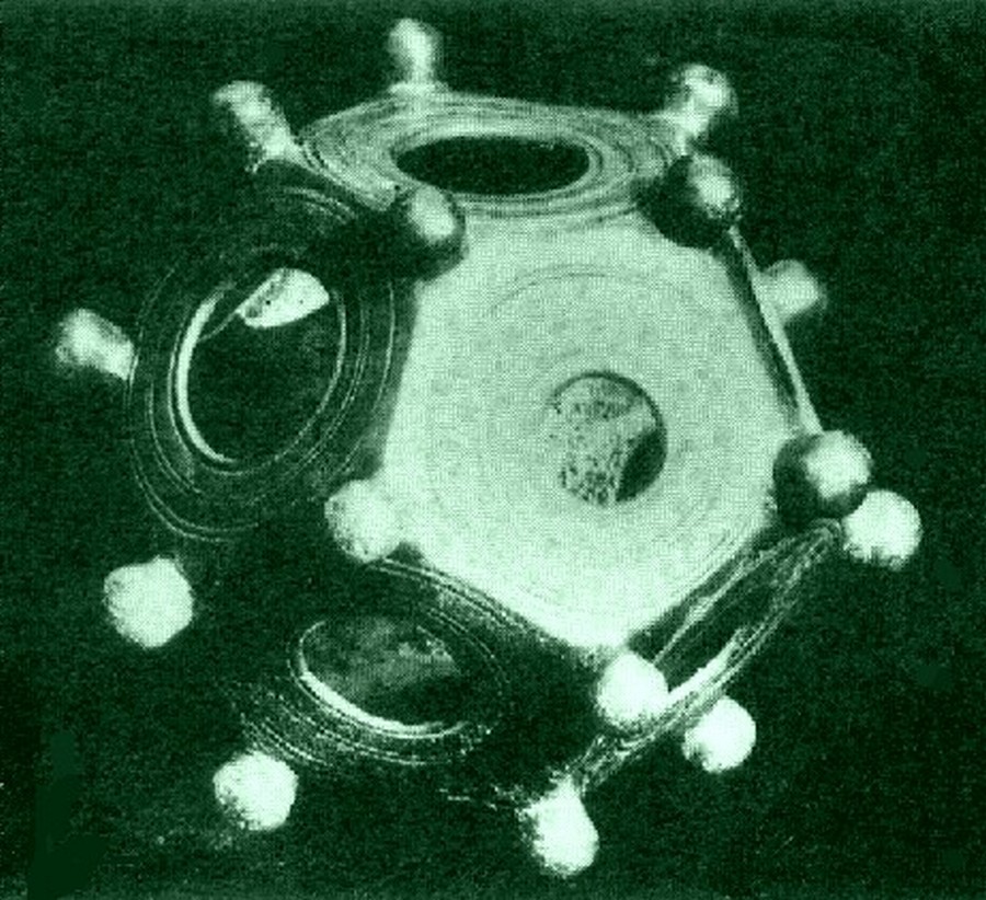 Имеет смысл обратить внимание на форму капсулы – сфера, помещенная внутрь правильного многогранника-додекаэдра. Откуда появилась именно такая форма конструкции, история умалчивает. Однако есть множество доводов в пользу того, что выбор этот был явно неслучайным.