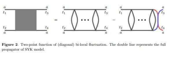 В проекции на модель SYK с её конфигурацией графа-лестницы, где в узлах находятся фермионы Майораны, концепция би-локальности, как быстро выяснилось, оказывается для теоретиков не просто уместной, но и чрезвычайно удобной. Базовая четырех-точечная функция в би-локальном представлении становится двухточечной, диагональные флуктуации компонентов фермиона между уровнями-«рельсами» становятся более наглядными, а в целом изначально «черный ящик» всей этой довольно загадочной динамики начинает выглядеть всё более постижимым.